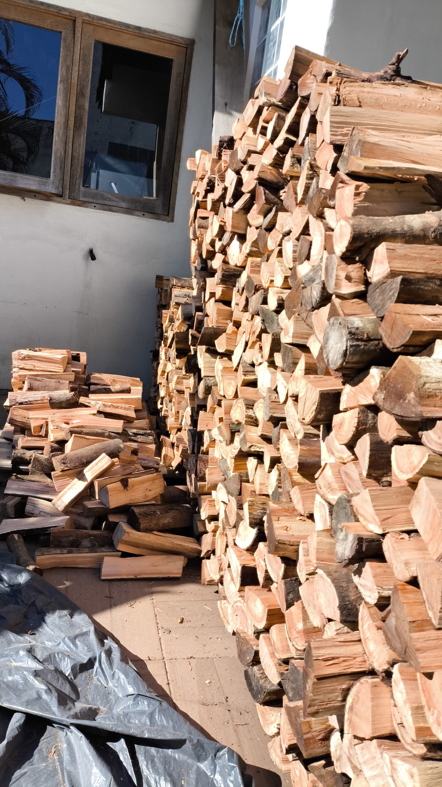 A lenha é entregue em toras cortadas e empilhadas, medida em metro cúbico, garantindo que você receba exatamente a quantidade contratada.